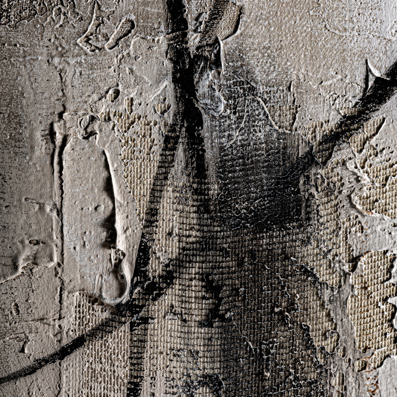 Lienzo enver de estilo contemporaneo fabricado en lienzo en color tonos claros con acabado artesanal combinado con madera de pino en color marron claro.