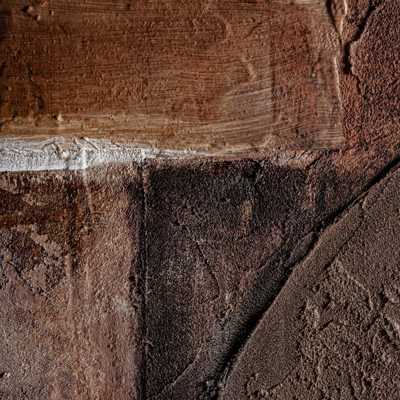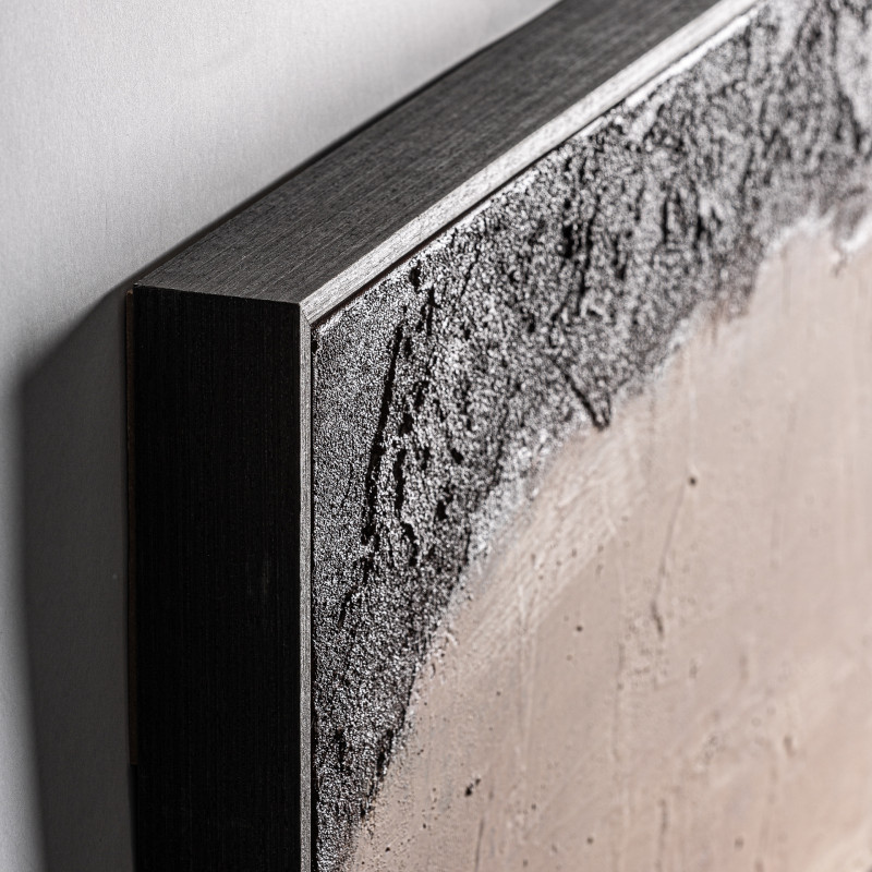 Cuadro enzo de estilo Contemporaneo Fabricado en Lienzo en Color Tonos en Marron Con Acabado Artesanal Combinado Con Madera de Pino en Color Negro.