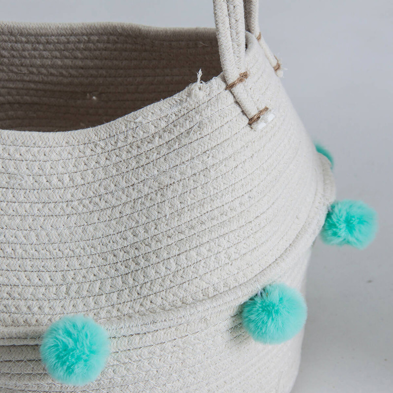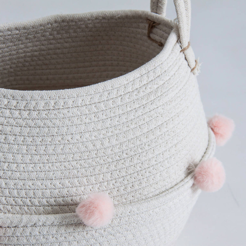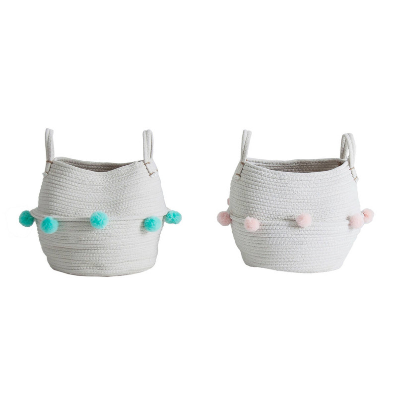 Cesto surt 2, en color blanco, de estilo shabby chic. Fabricado en cuerda, combinado con poliester.