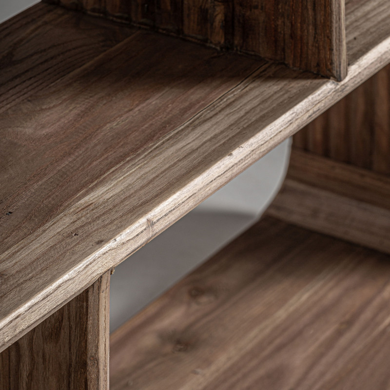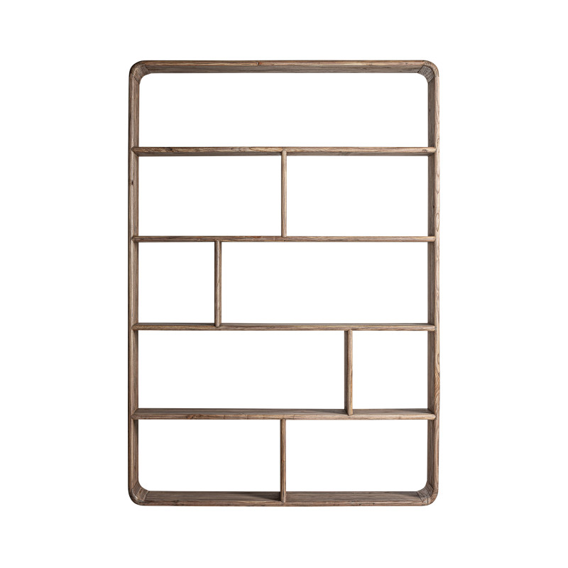 Libreria gloucester de estilo colonial fabricado en madera de olmo reciclado en color marron claro.