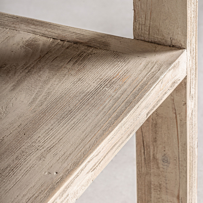 Estanteria Stendal de estilo Colonial Fabricado en Madera de Olmo Reciclado en Color Blanco Con Acabado decapado.