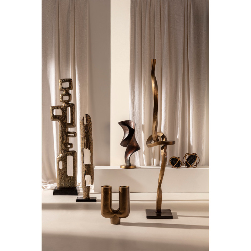 FIGURA 22x22x22 METAL DORADO/MADERA NEGRO