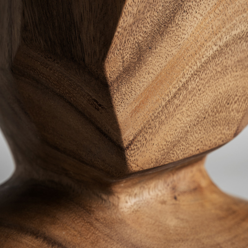 Figura decorativa de estilo nordico fabricado en madera suar en color tonos en marron con acabado natural.