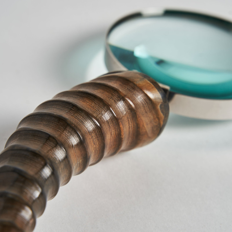 Lupa maddy de estilo art deco fabricado en cuerno en color oro con acabado viejo.
