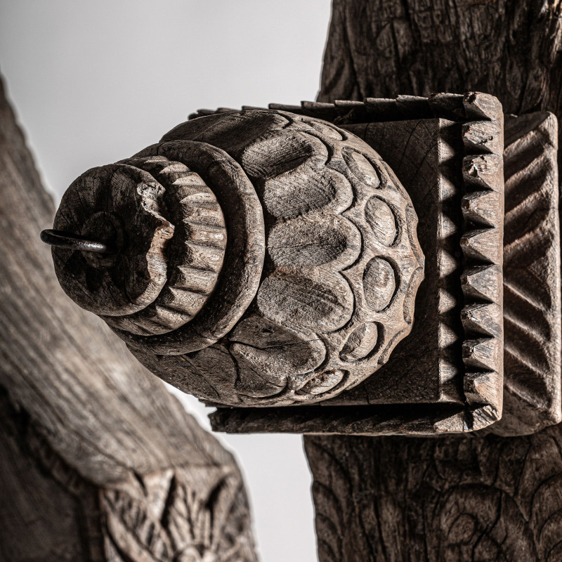 Escultura J 2 Hut de estilo etnico Fabricado en Madera Tropical en Color Marron Con Acabado envejecido Combinado Con Hierro en Color Negro.