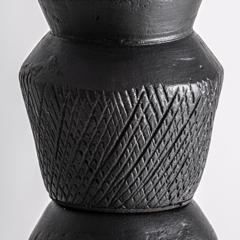 Figura decorativa Soma de estilo Minimalista Fabricado en Terracota en Color Negro Con Acabado Mate Combinado Con Marmol en Color Beige Y Aluminio. Producto desmontable.
