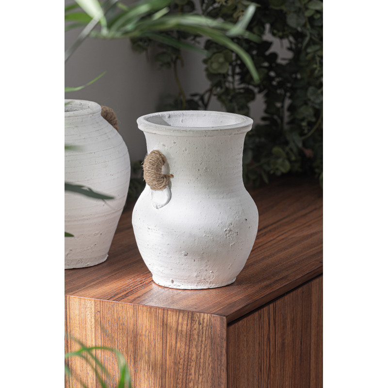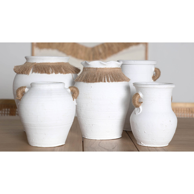 Jarron enit, en color blanco, de estilo boho. Fabricado en ceramica.