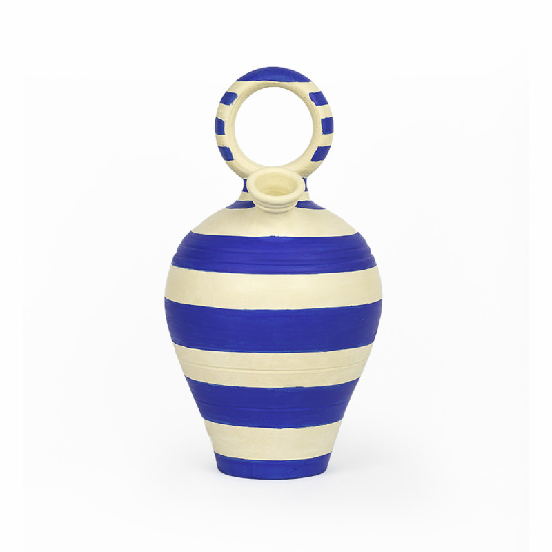 BOTIJO 18x18x31 ARCILLA BLANCO ROTO/AZUL