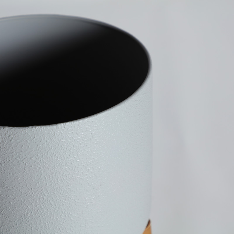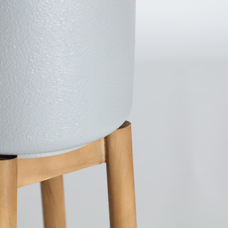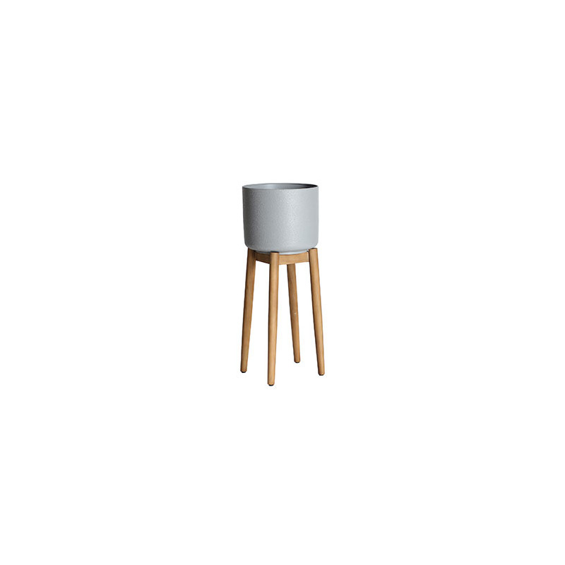 Macetero jerges de estilo kitsh, fabricado en hierro en color gris, combinado con madera de abeto en color marron claro. Producto desmontable.