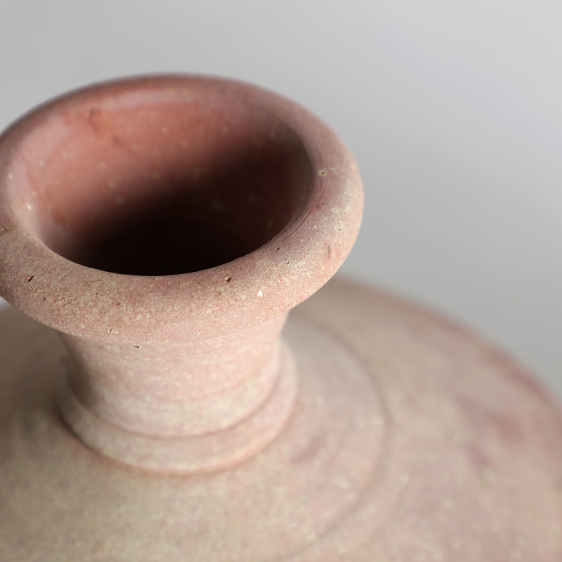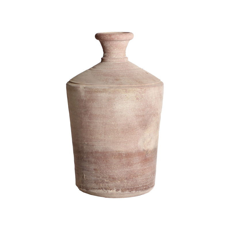 Jarron blodhe de estilo colonial fabricado en arcilla en color tonos en marron.