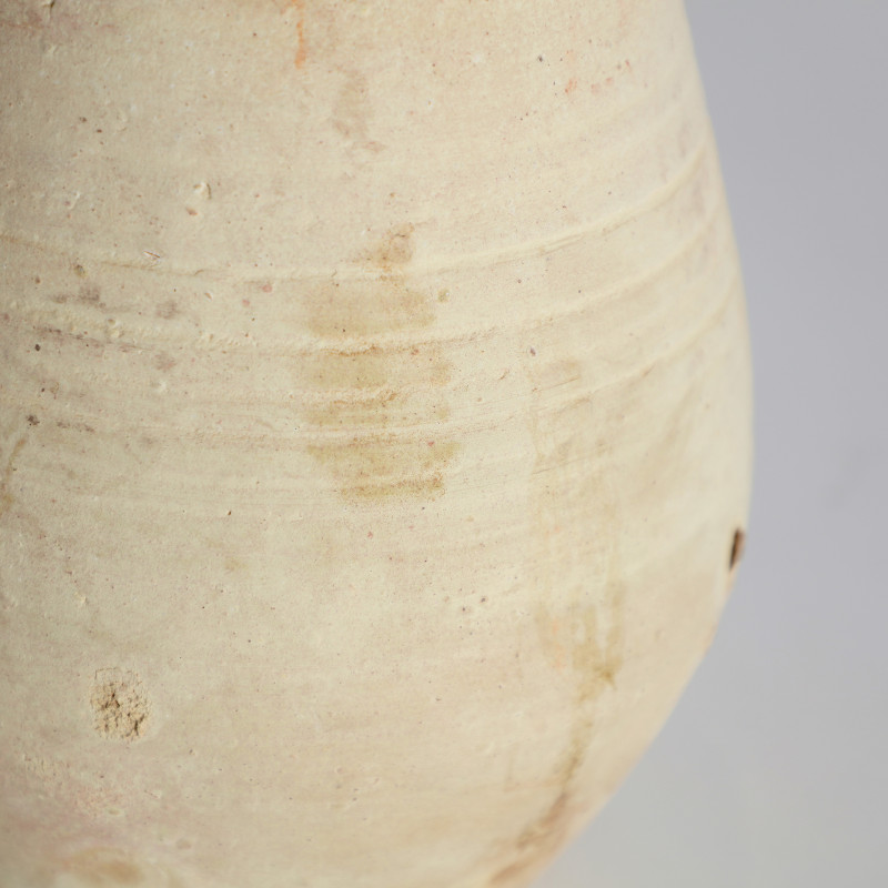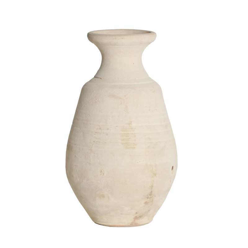 Jarron vera de estilo colonial fabricado en arcilla en color marron claro.