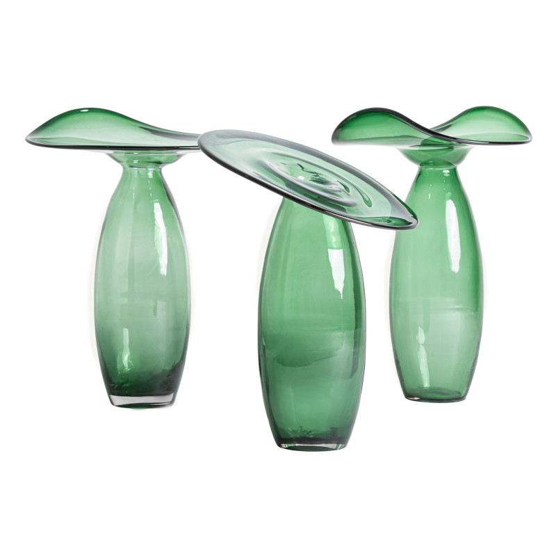 Jarron Akari de estilo Contemporaneo Fabricado en Vidrio en Color Verde Con Acabado Traslucido.