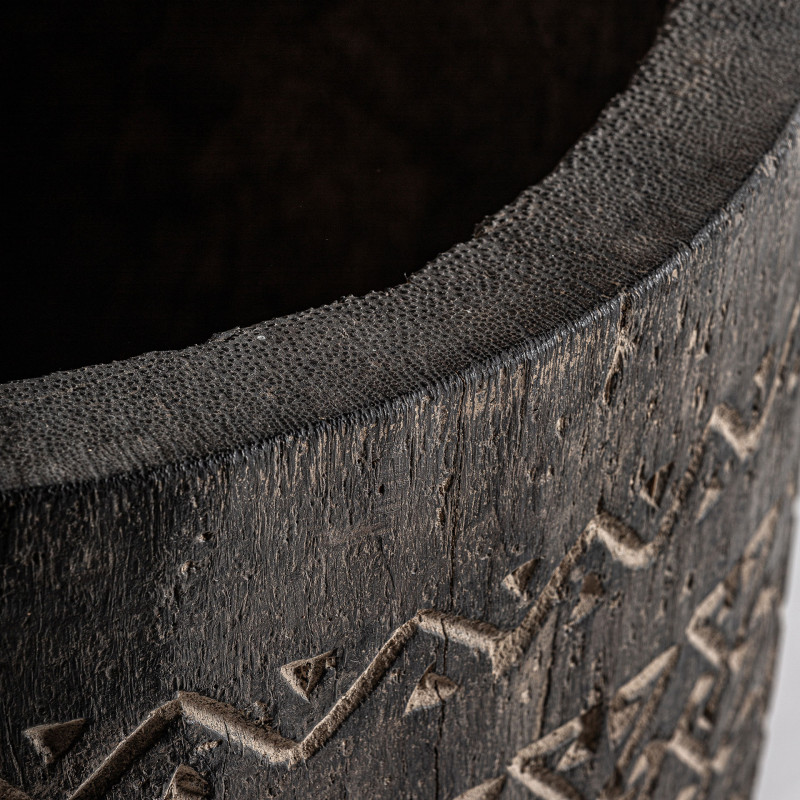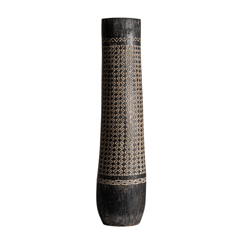 Jarron Nantua de estilo Contemporaneo Fabricado en Madera Palma en Color Tonos en Marron Con Acabado Tallado.
