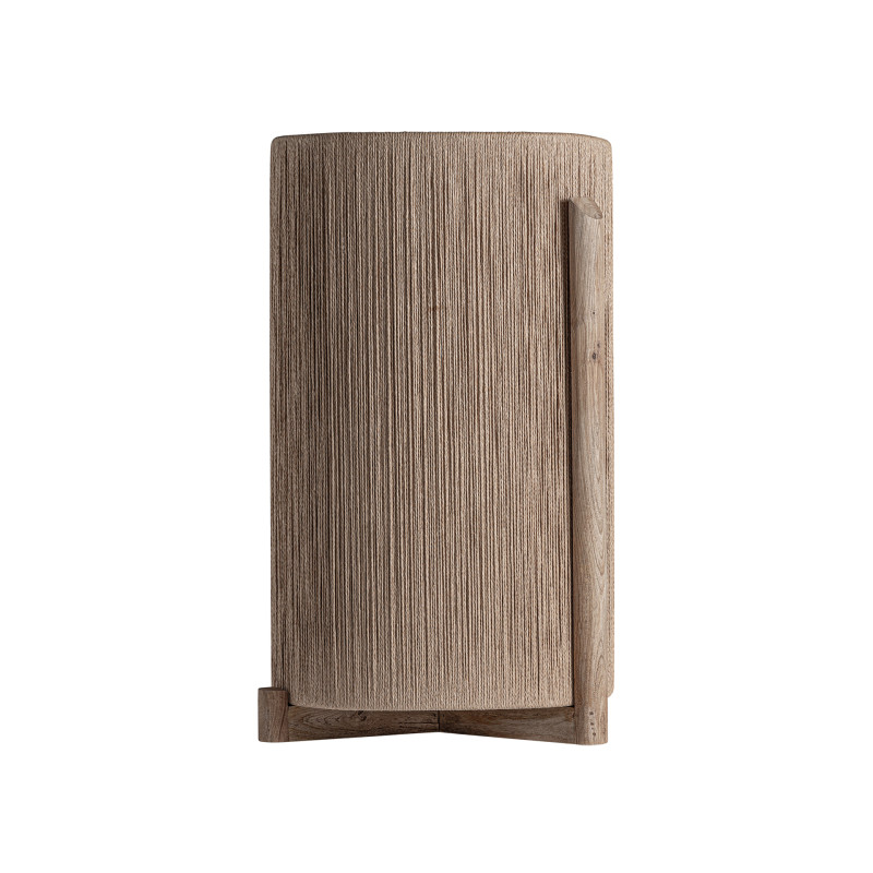 Macetero Jacquard de estilo Contemporaneo. Fabricado en Madera de Mango en Color Marron Combinado Con Rafia en Color Marron Claro.