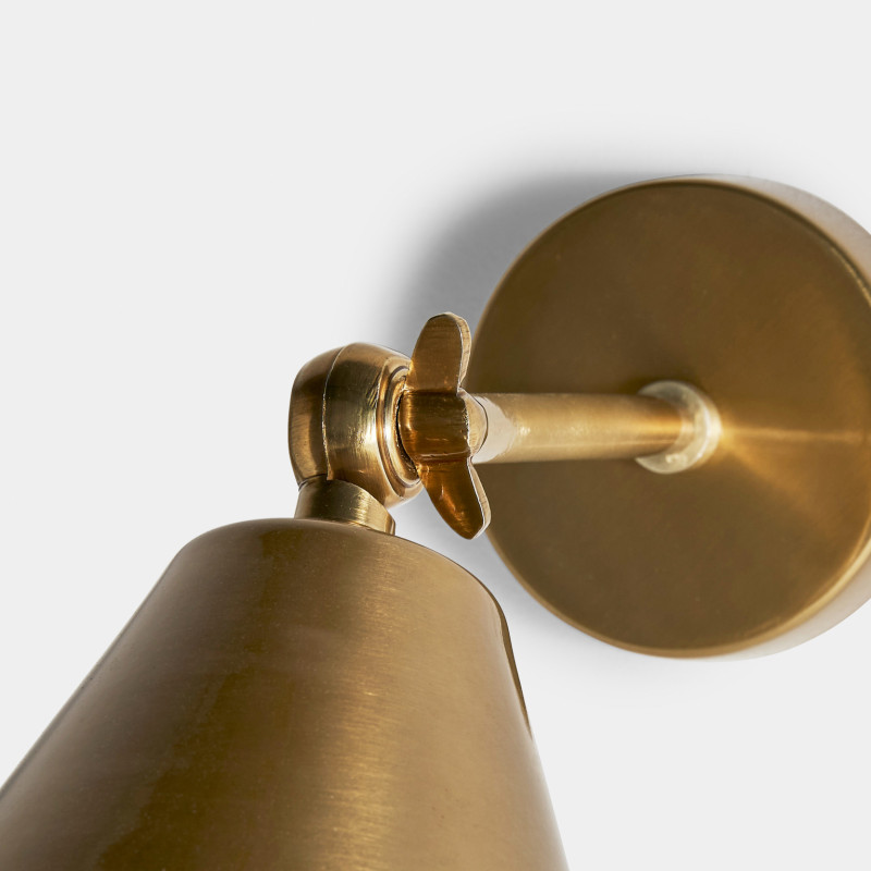 Lampara de pared, en color oro, de estilo art deco. Fabricado en hierro, combinado con laton.