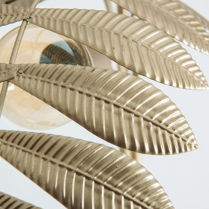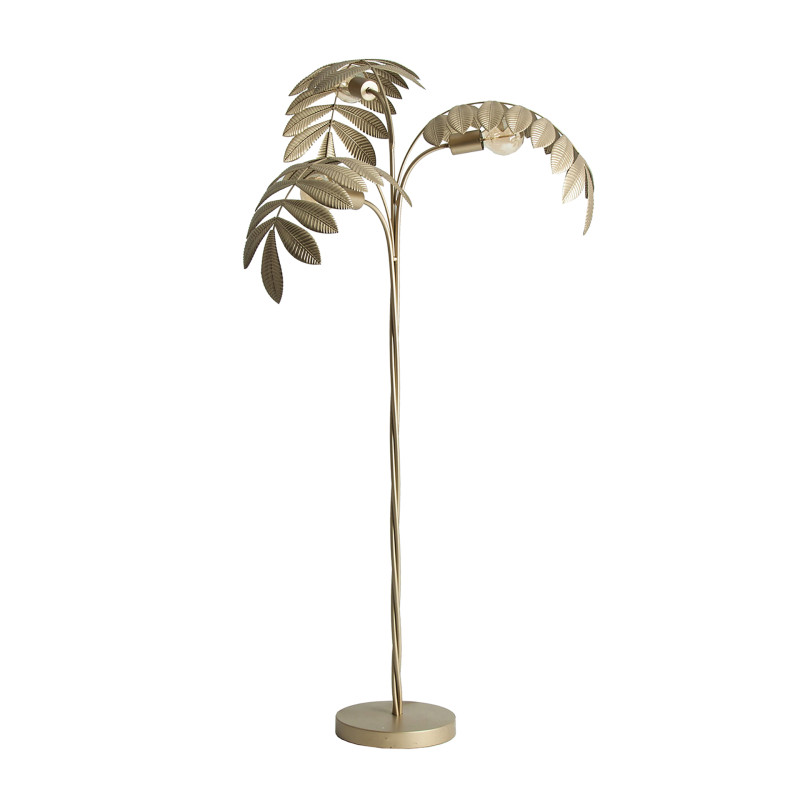 Lampara de pie hojas, en color oro viejo, de estilo art deco. Fabricado en hierro. Producto desmontable.