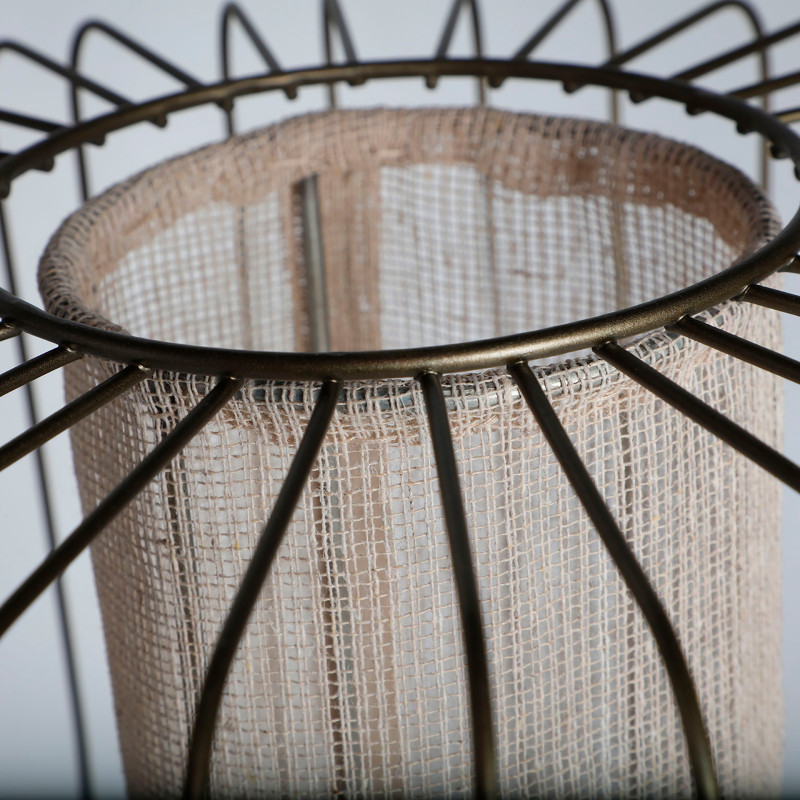 Lampara de sobremesa alles, en color negro/oro, de estilo industrial. Fabricado en hierro, combinado con yute.