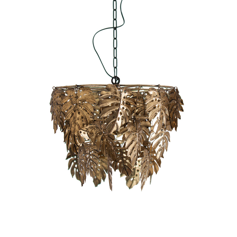 Lampara de techo angon, en color oro viejo, de estilo art deco. Fabricado en hierro. Producto desmontable.