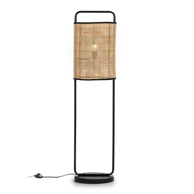 LAMPARA DE PIE 33x33x134 METAL NEGRO/RATAN NATURAL