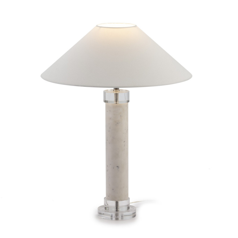LAMPARA SOBREMESA SIN PANTALLA 13x13x52 METACRILATO/MARMOL BLANCO/METAL PLATEADO