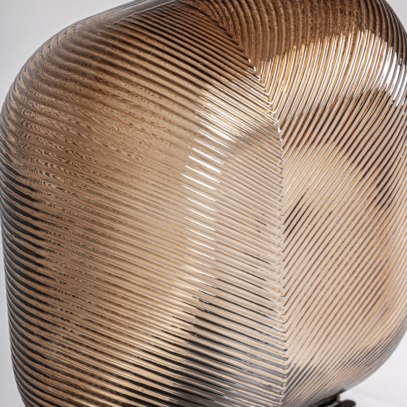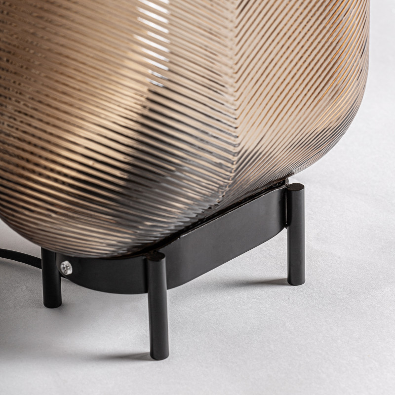 Lampara de sobremesa, fabricado en vidrio en color negro/marron, combinado con acero en color marron. Producto desmontable.