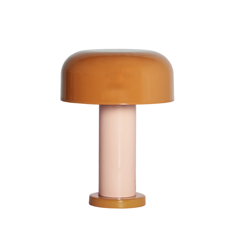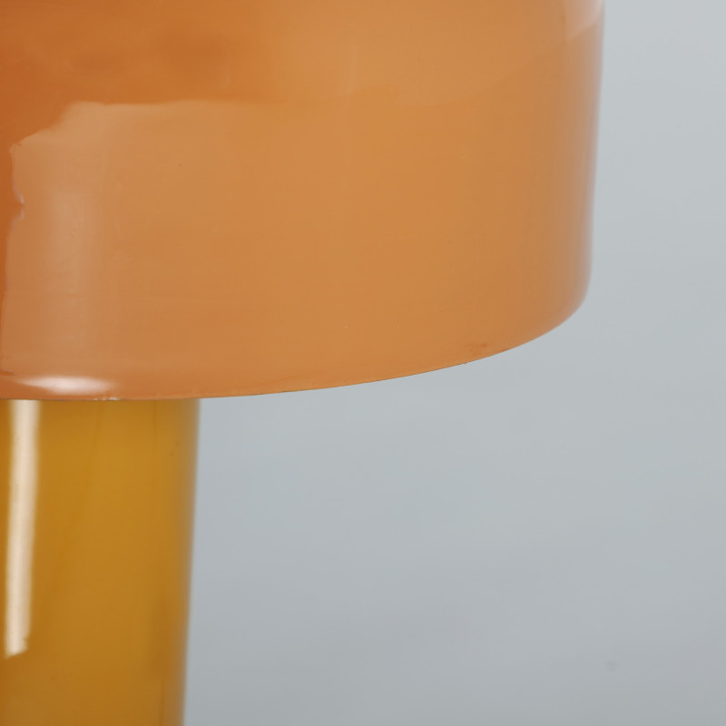 Lampara de sobremesa Albate de estilo moderno, fabricado en hierro en color ambar en color mostaza en color azul petroleo.
