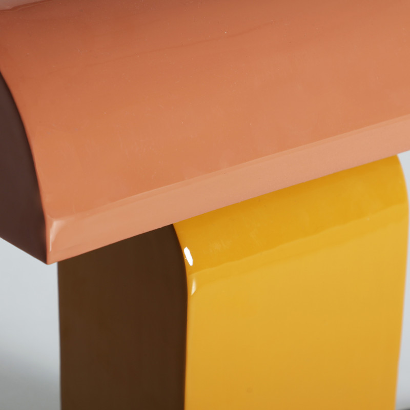 Lampara de sobremesa Vezia de estilo moderno, fabricado en hierro en color amarillo en color marron.
