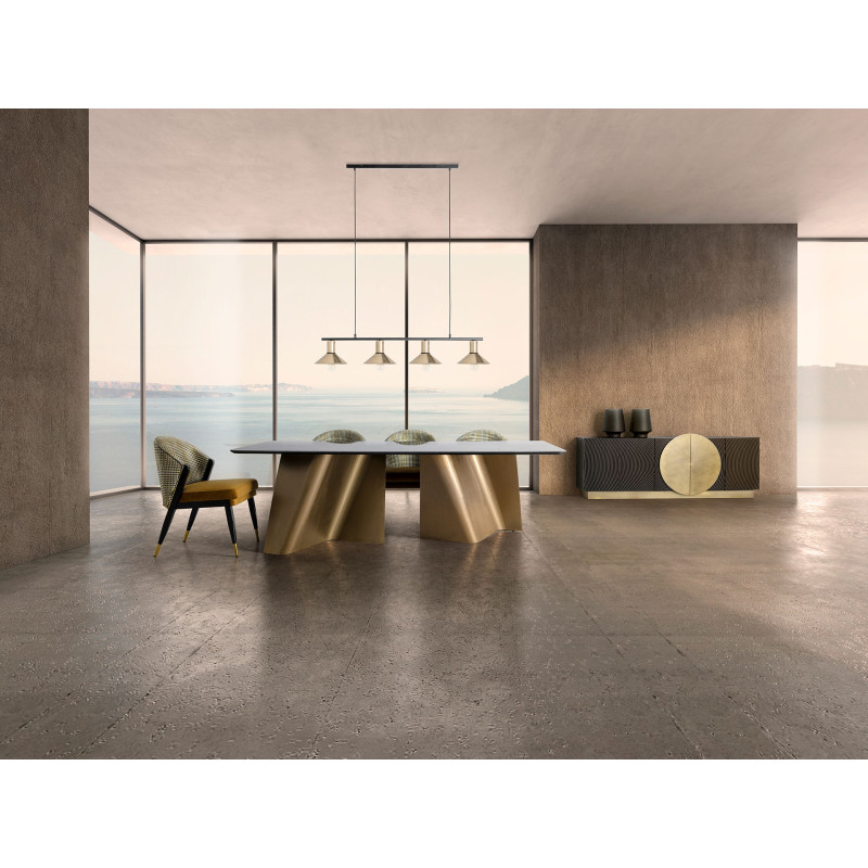 Lampara de colgar en color oro de estilo art deco. Fabricado en hierro.