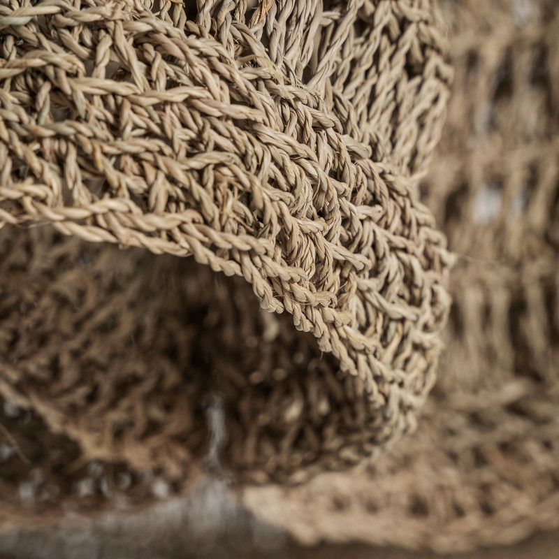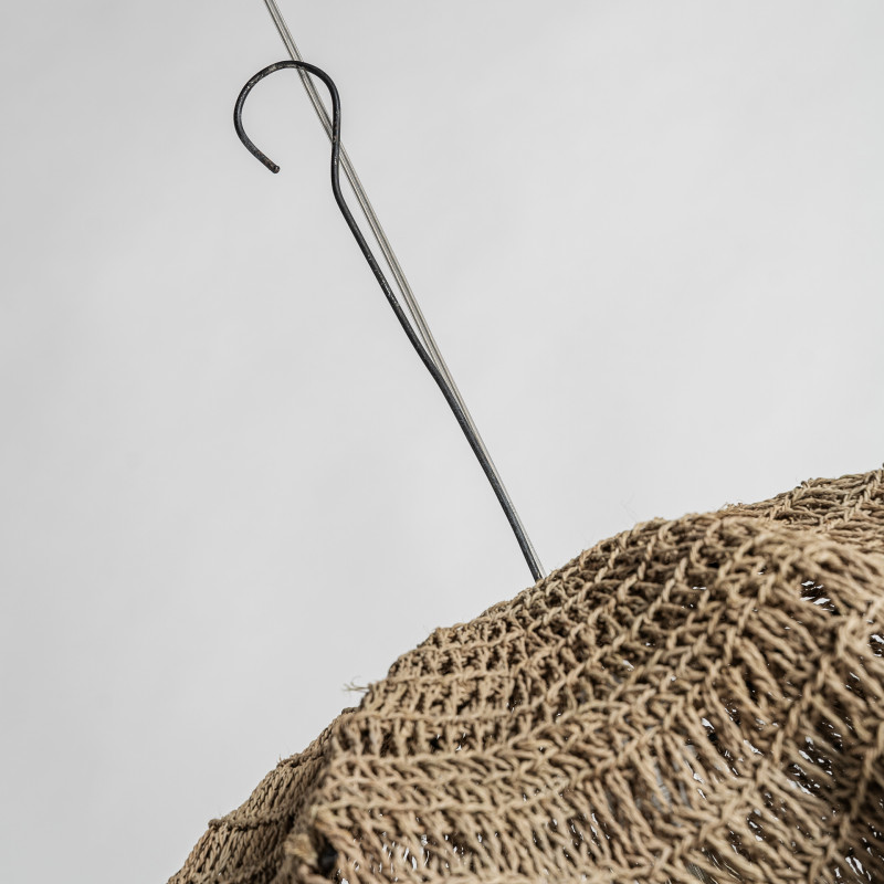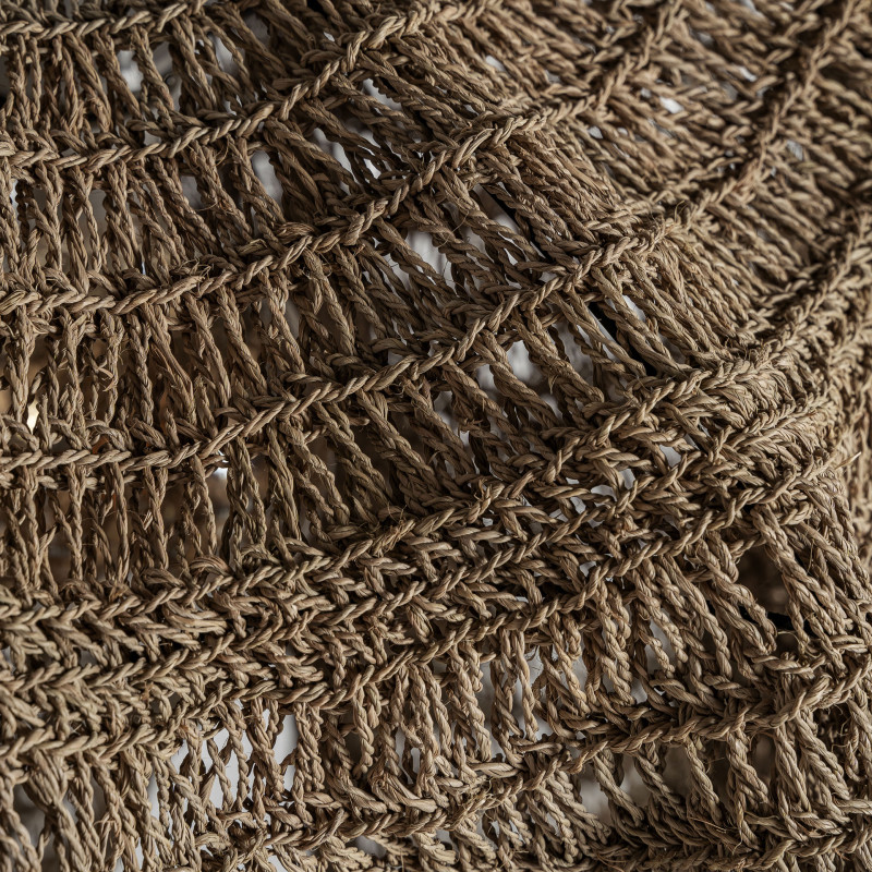 Lampara de colgar de estilo boho fabricado en fibra natural en color marron.