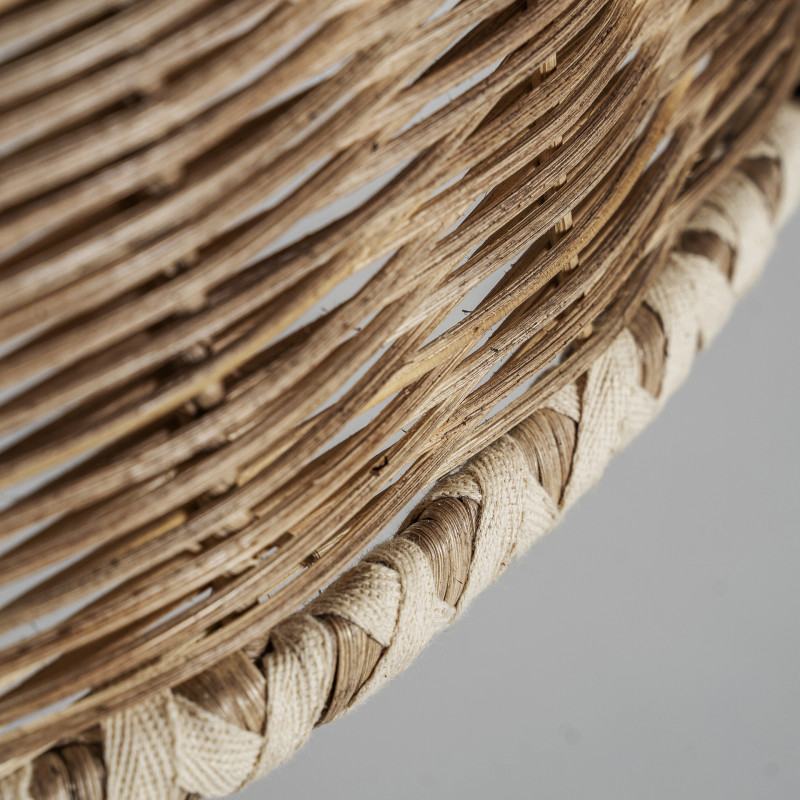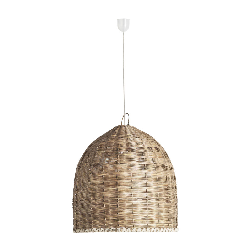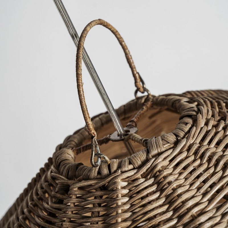 Lampara de colgar de estilo boho fabricado en ratan en color marron.