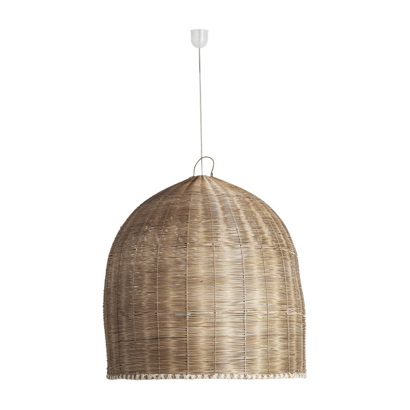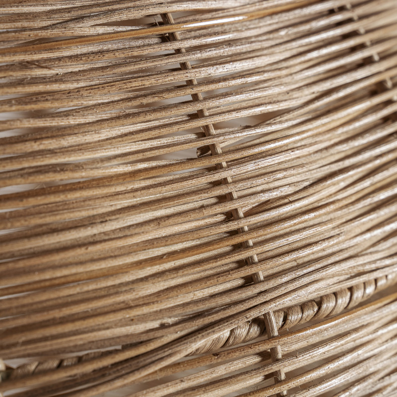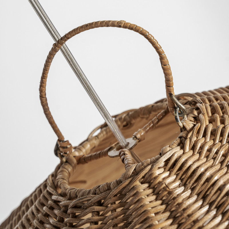 Lampara de colgar de estilo boho fabricado en ratan en color marron.