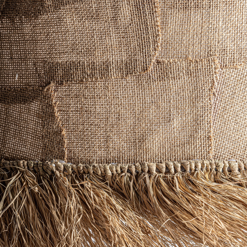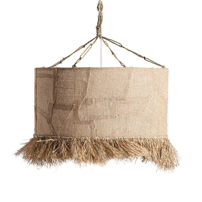 Lampara de colgar de estilo boho fabricado en yute en color marron.