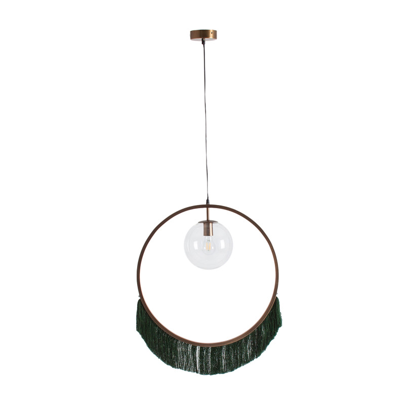 Lampara de colgar bulevard de estilo shabby chic fabricado en laton en color verde combinado con cristal en color oro y poliester.