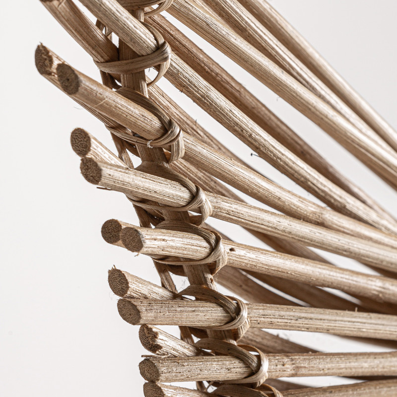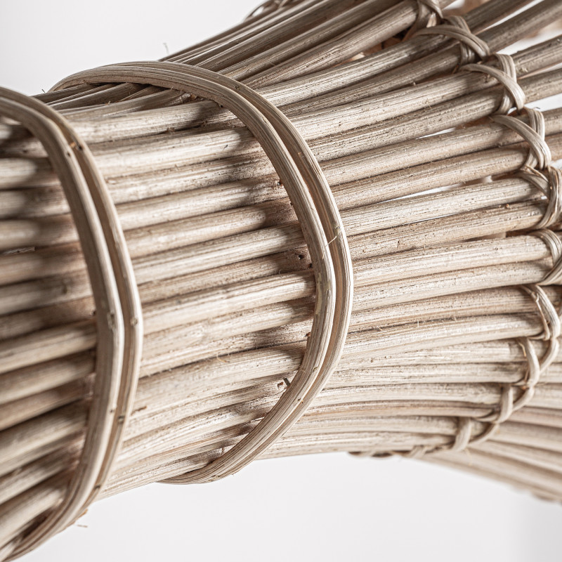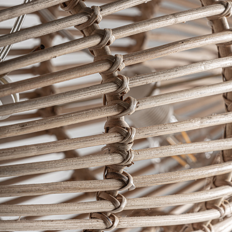 Lampara de colgar pez de estilo boho fabricado en ratan en color marron.