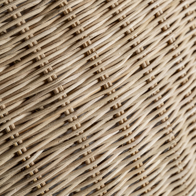 Lampara de pie de estilo boho fabricado en ratan en color marron claro.