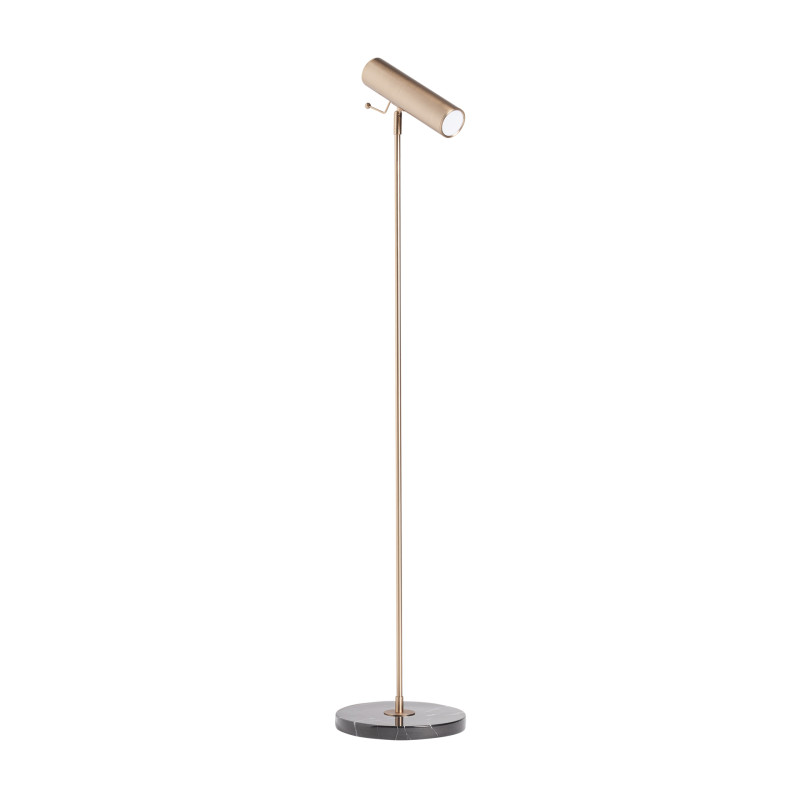 Lampara de pie de estilo art deco fabricado en hierro en color negro combinado con marmol en color oro.