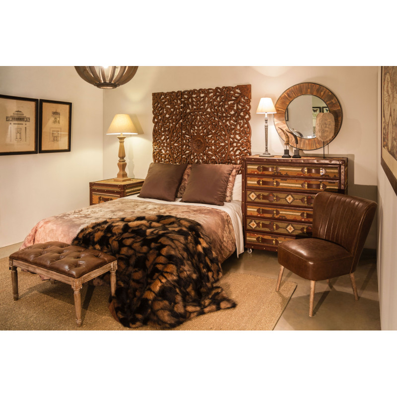 Lampara de sobremesa de estilo provenzal fabricado en madera roble en color marron con acabado envejecido.