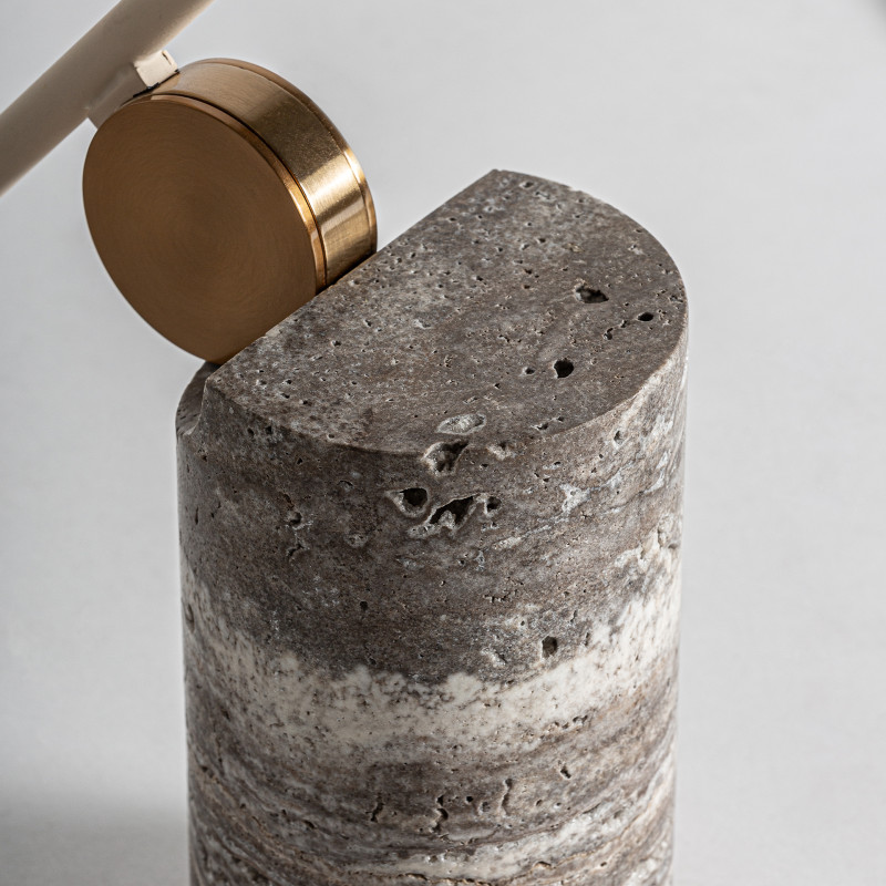Lampara de sobremesa de estilo art deco fabricado en marmol en color tonos oscuros combinado con hierro en color crema en color oro con acabado bronce.