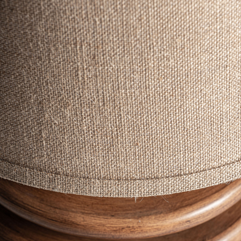 Lampara de sobremesa de estilo art deco fabricado en resina en color marron combinado con yute. Producto desmontable.