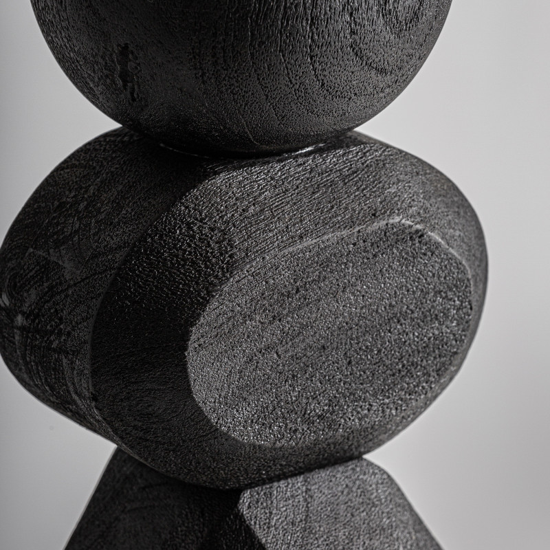 Lampara de sobremesa cogne de estilo contemporaneo fabricado en madera de mango en color negro combinado con yute en color crema.