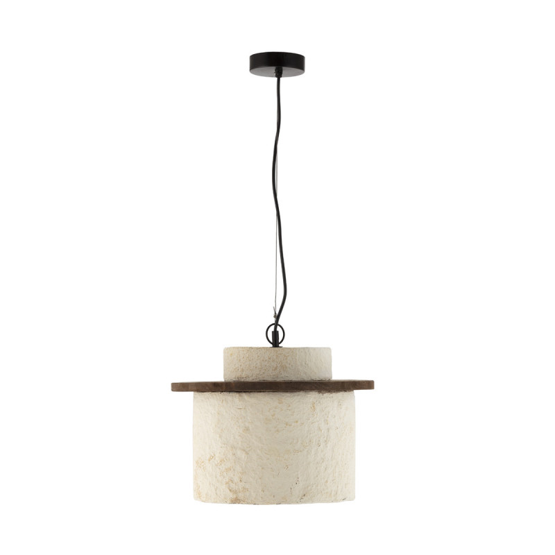 LAMPARA DE TECHO 38x38x30/120 PAPEL MACHE BEIGE ENVEJECIDO/MADERA MARRON/METAL NEGRO
