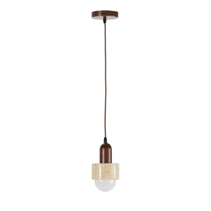 LAMPARA TECHO 12x12x16 TAVERTINO/CRISTAL/MADERA NEGRO MATE
