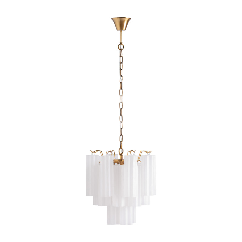 Lampara de Colgar Fabricado en Cristal en Color Blanco Combinado Con Acero en Color dorado.