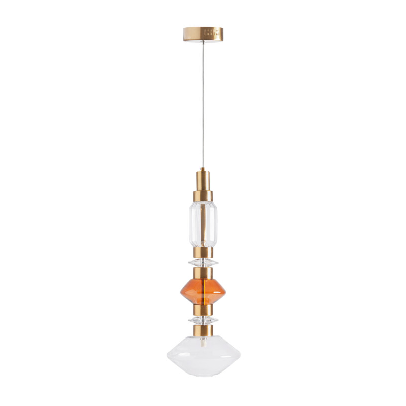 Lampara de Colgar Anna de estilo Art deco Fabricado en Cristal en Color Tonos Neutros Con Acabado Ahumado Combinado Con Acero en Color Cobre.