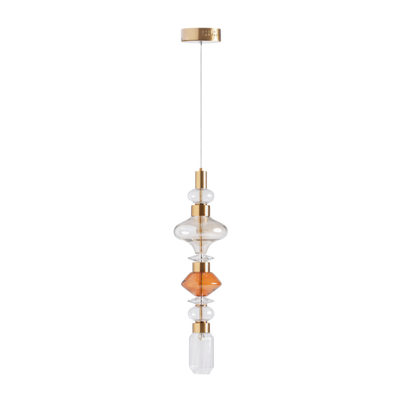 Lampara de Colgar Anna de estilo Art deco Fabricado en Cristal en Color Tonos Neutros Con Acabado Ahumado Combinado Con Acero en Color Cobre. Producto desmontable.