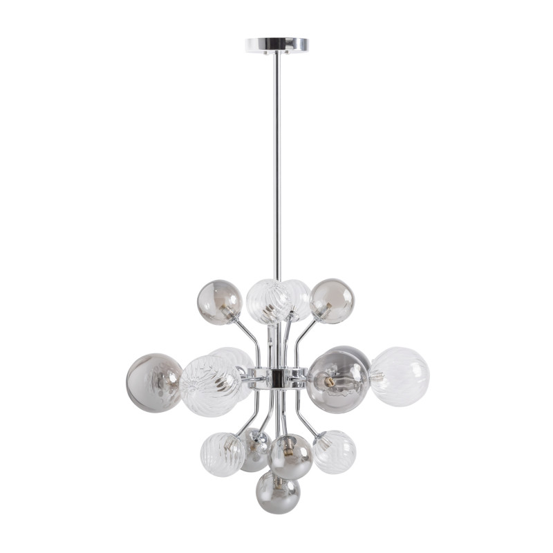 Lampara de Colgar Carla de estilo Art deco Fabricado en Cristal en Color Gris Con Acabado Ahumado Combinado Con Acero en Color Plata. Producto desmontable.