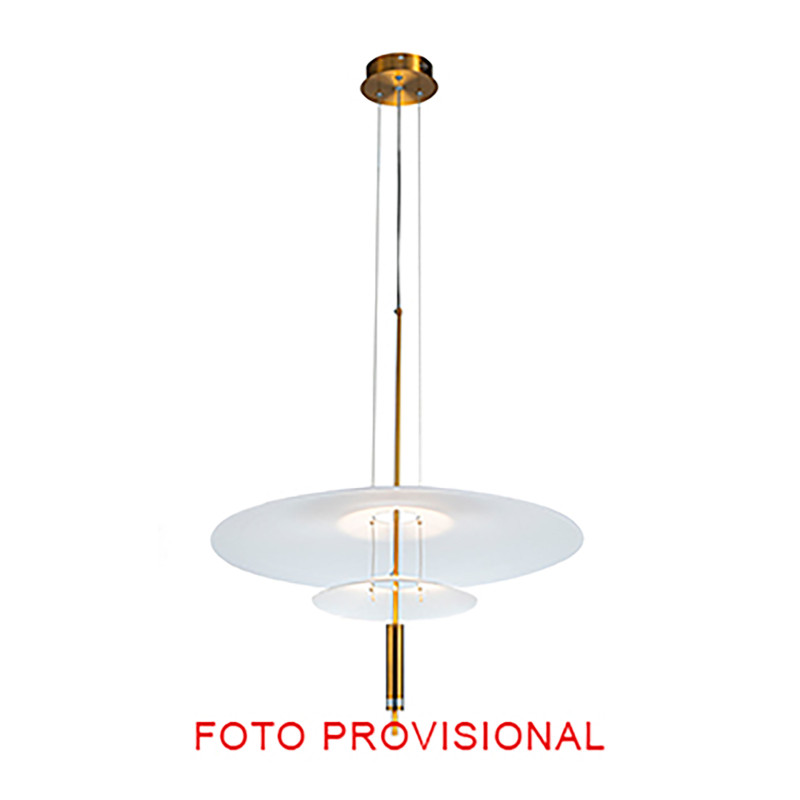 Lampara de Colgar Caroline de estilo Art deco Fabricado en Acrilico en Color Blanco Combinado Con Acero en Color Cobre. Producto desmontable.