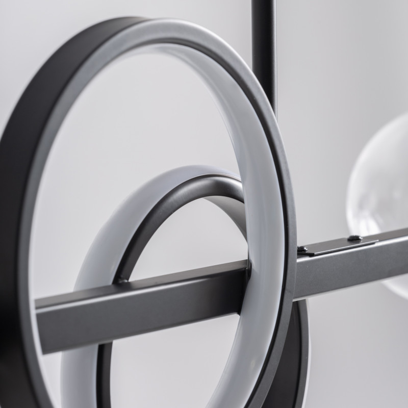 Lampara de Colgar daria de estilo Contemporaneo Fabricado en Cristal en Color Transparente Con Acabado Ahumado Combinado Con Acero en Color Negro. Producto desmontable.