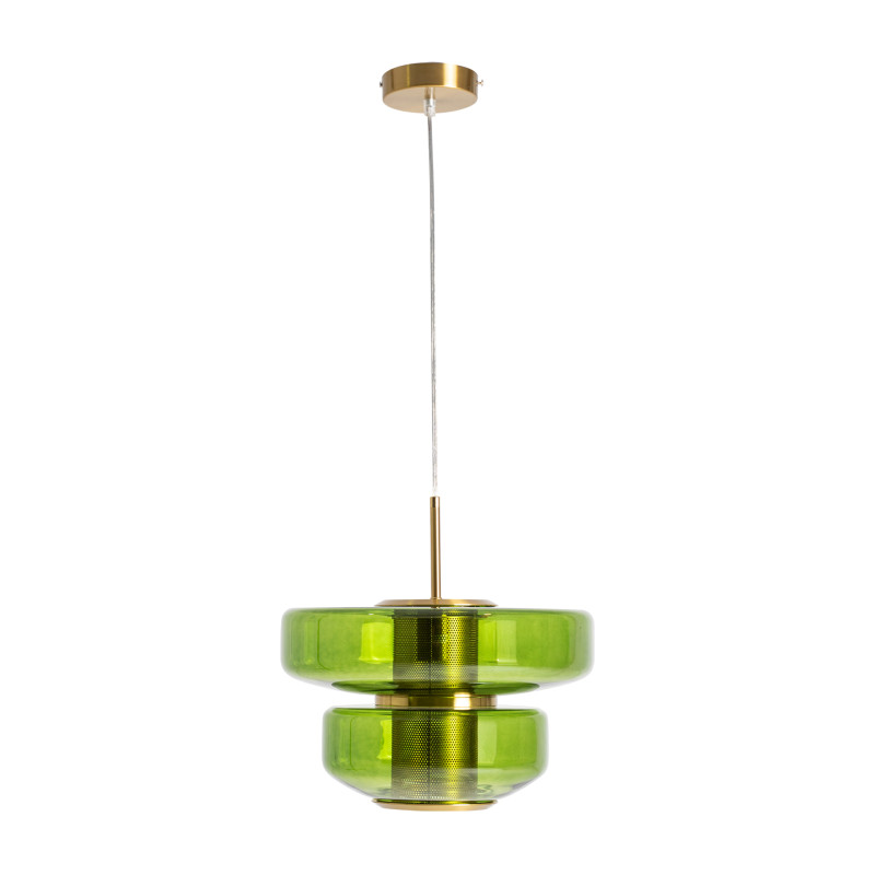 Lampara de Colgar Gala de estilo Art deco Fabricado en Cristal en Color Verde Con Acabado Traslucido Combinado Con Hierro en Color Oro. Producto desmontable.