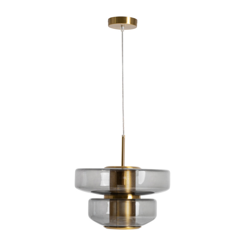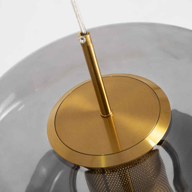 Lampara de Colgar Gala de estilo Art deco Fabricado en Cristal en Color Gris Con Acabado Traslucido Combinado Con Hierro en Color Oro. Producto desmontable.